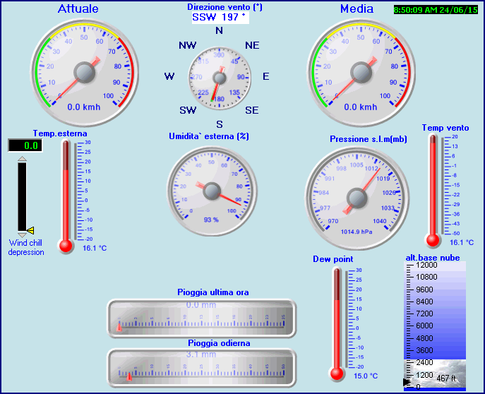 | Pioggia di ieri | 0.9 mm | DewPoint | 19.7°C (Wet Bulb :20.4°C ) |