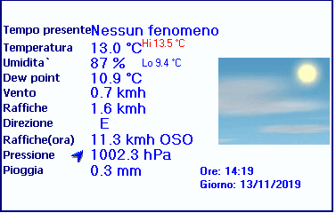 | Umidita | 89 %, Humidex 29.0°C | Pressione S.L.M. | 1019.8 hPa |